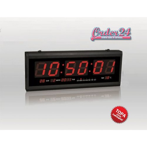 LED Ρολόι Τοίχου Πάνελ Ψηφιακό Μεγάλο Ημερ. + Θερμοκρασία